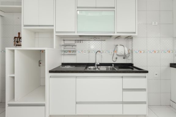 A área de preparação de alimentos é servida de móveis planejados de bom gosto, dando praticidade e funcionalidade para que o MasterChef prepare as delícias do seu dia-a-dia.