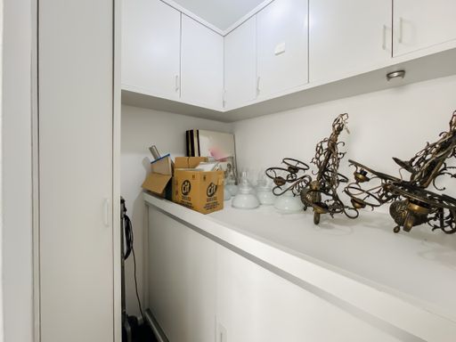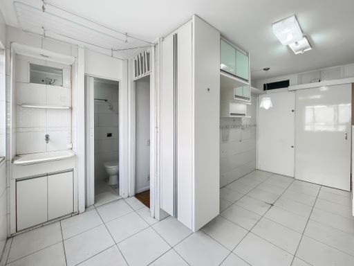 Integra também o ambiente área de serviço espaçosa onde sua secretária do lar pode realizar as tarefas domésticas com perfeição e ainda auxiliar o seu MasterChef e conta ainda com banheiro e espaço para repouso para recuperar as energias, que também tem a funcionalidade de despensa.